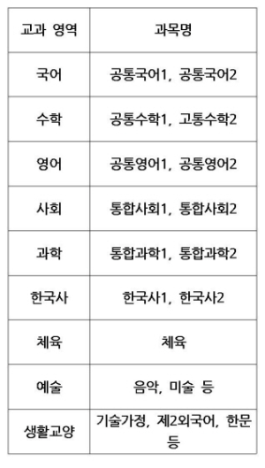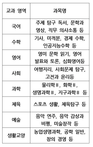- 고등학교 1학년 중심으로 배우는 과목들로, 모든 학생이 이수해야 함